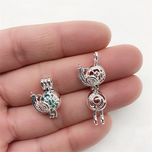 10pcs Snail Pearl Cage Bright Silver Beads Cage Locket Pendant Jewelry Making--For Oyster Pearls, Essential Oil Diffuser, Fun Gifts (Snail)