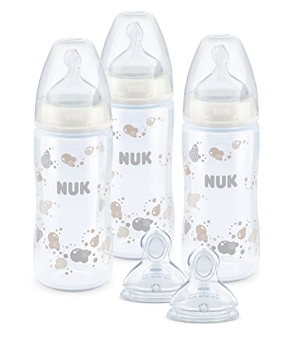3 NUK First Choice+Babyflaschen aus Polypropylen (PP) mit Silikon-Trinksauger 0-6Monate M für Milch