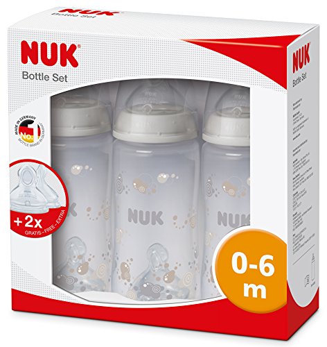 Optimale Versorgung ist diebeste Voraussetzung für einen gelungenen Start ins Leben. Seitvielen Jahrzehnten vertrauen Mütter auf der ganzen Welt hochwertigenNUK Baby-Artikeln, die die gesunde Gesamtentwicklung des Kindes vonAnfang an unterstützen und fördern. Das NUKFirst Choice+ 3plus 2 Set ist das optimale Vorteils-Paket mitdrei 300 ml NUK First Choice+Babyflaschen aus Polypropylen, die jeweils mit einem NUK FirstChoice+Trinksauger aus Silikon bestückt sind. Zusätzlich sind zwei NUKFirst Choice+Ersatztrinksauger Silikon 0-6 Monate M enthalten.