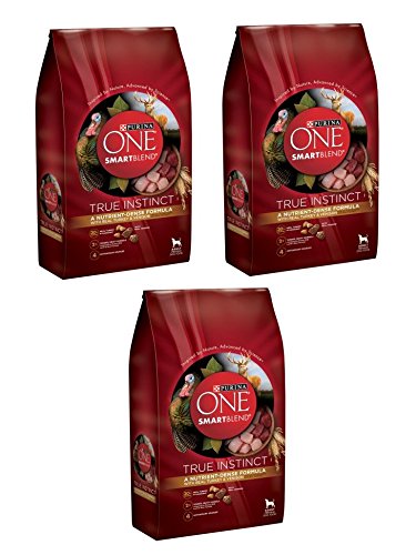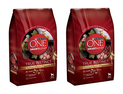 Give your dog the nutrition he needs while satisfying his true instincts with Purina ONE SmartBlend True Instinct With a Natural Blend Of Real Turkey & Venison adult dry dog food. This natural pet food plus vitamins and minerals features a blend of real turkey and venison and other high-quality ingredients to provide the protein active adult dogs need and the nutrient-dense nutrition dogs crave. Crunchy kibble and double the meaty morsels compared to our Purina ONE Lamb & Rice formula help to make mealtime enjoyable, and the highly-digestible formula lets more nutrition go to work inside your dog. Along with 30% protein in every serving, this dog food provides a natural source of glucosamine to help support your dog's healthy joints for an active lifestyle. Nature plus science helps provide 100% complete and balanced nutrition to support an adult dog's whole-body health to easily meet your dog's nutritional needs. For quality taste at every meal, choose Purina dog food from Amazon.com.