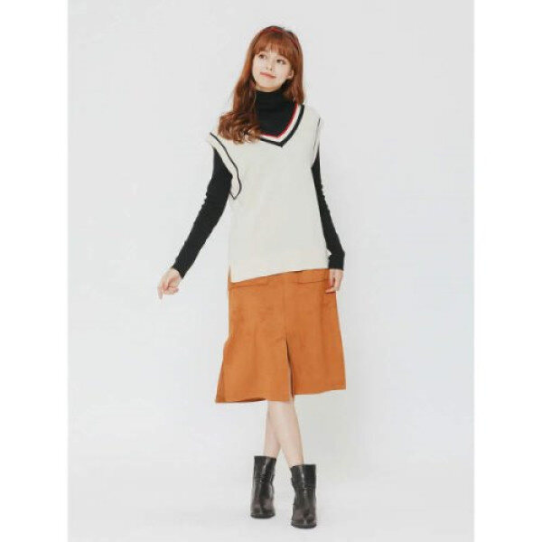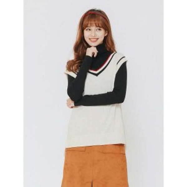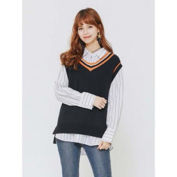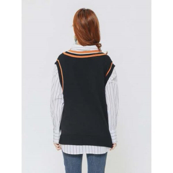 캐주얼한 면혼방 v넥 베스트입니다 넥라인 배색으로 포인트룩으로 좋아요