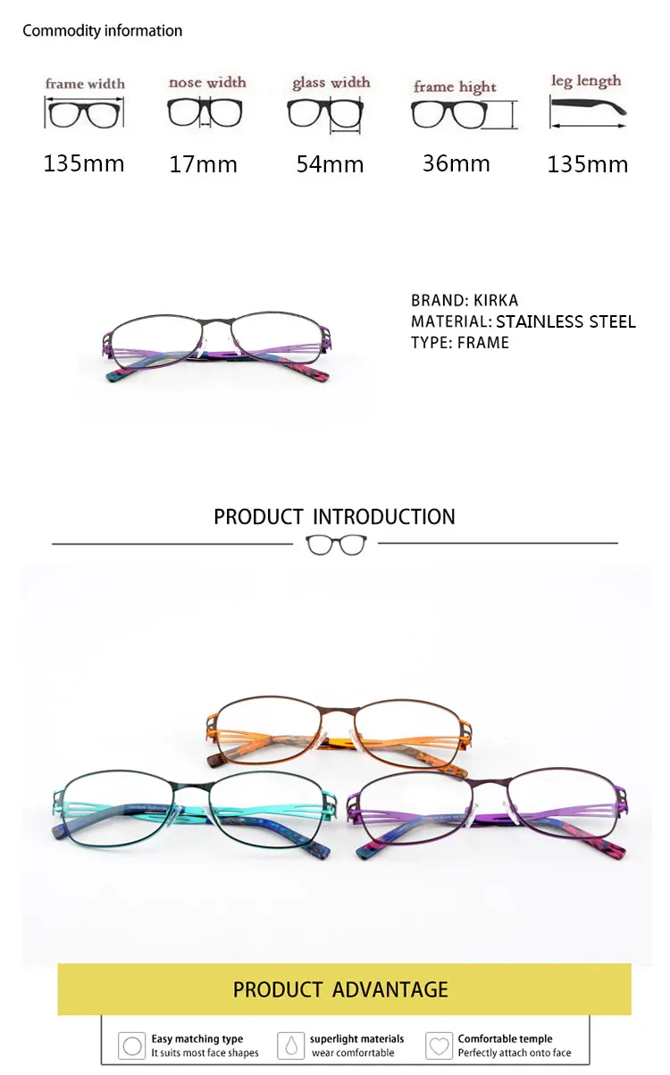 Name:Kirka Fashion Purple Metal Frame Eyeglasses For Women