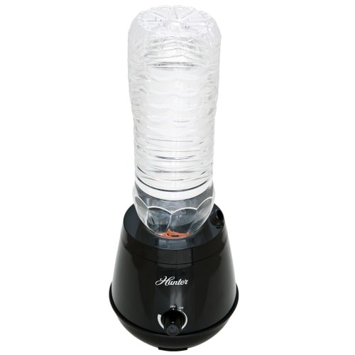 Studio : Hunter Home Comfort Publisher : Hunter Home Comfort Product Description Features: Ultrasonic technology ensures completely silent operation Compact size is perfect traveling or personal workspaces Use any standard plastic bottle up to 20 oz. as water reservoir Designed with a modern appeal and durable finish Available in many different color options to suit your style and decor Specifications: Reservoir Capacity: 20 oz Mount type: Freestanding Height: 4.41" Length: 4.37" Width: 4.37" Voltage: 120 Manufacturer Warranty: 1 Year Limited UL Listed: Yes 0