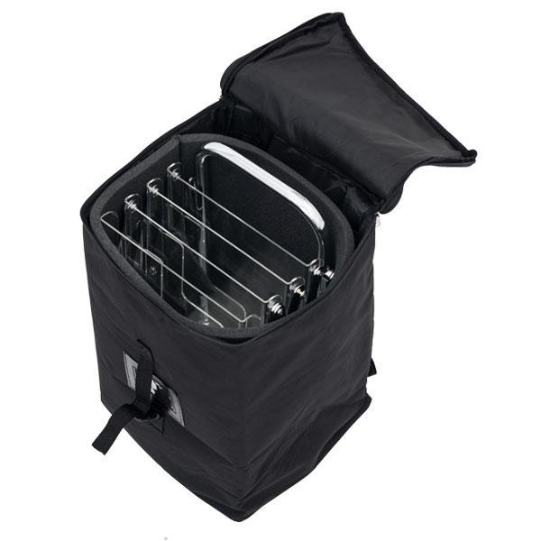 工具は一切不要。組立、収納が簡単なモバイルパンフレットスタンドです。パンフレット収納部がケース状になっているので、収納物が見やすく取り出しやすいです。持ち運びに便利な収納バッグ付き。 |