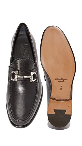 Product Description Pebbled calfskin composes these classic Salvatore Ferragamo loafers, topped with a branded horse bit. Sewn to a leather sole and stacked, rubber-tipped heel. Full leather sock liner. 0