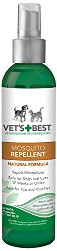 -. Feature : Vet's Best Mosquito Repellent Spray is a natural, safe, and effective way to repel mosquitos in your backyard, for dogs and cats, and clothing / Mosquito Repellent uses powerful, key natural ingredients of lemongrass oil and geraniol oil to repel mosquitos; chemical-free and DEET-free / Mosquito Repellent spray is safe to use for kids and the entire family; safe to use on dogs and cats 12 weeks or older / Made in the USA