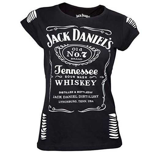 -. Feature : Original Jack Daniels Shirt für Damen mit großflächigem JD Motiv Aufdruck / Sehr angenehm zu tragen / Talliert geschnittenes Shirt / Farbe: Schwarz / 100% hochwertigste Baumwolle