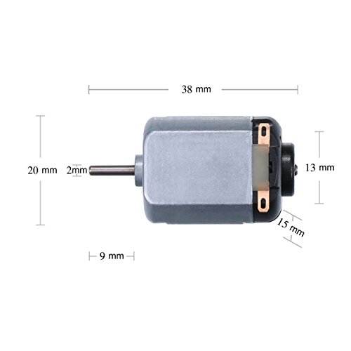 Motor size:38 x 20 x 15 mm/1.5" x 0.79" x 0.59"; Shaft length:9 mm/0.35"; Shaft diameter:2 mm/0.08".