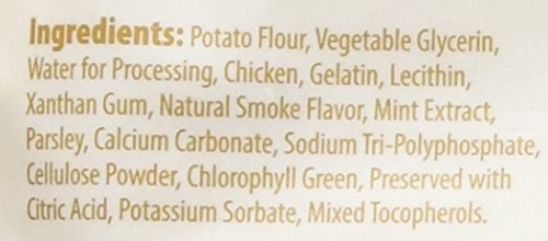 -. Feature : Made with 100% real chicken / Grain, gluten, wheat and corn free / Massages gums, controls tartar and freshens breath / Suitable for adult dogs / Made in the USA