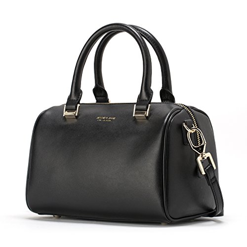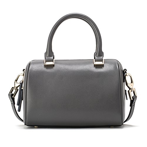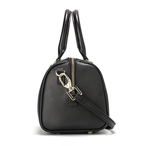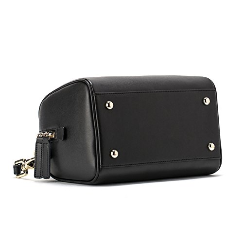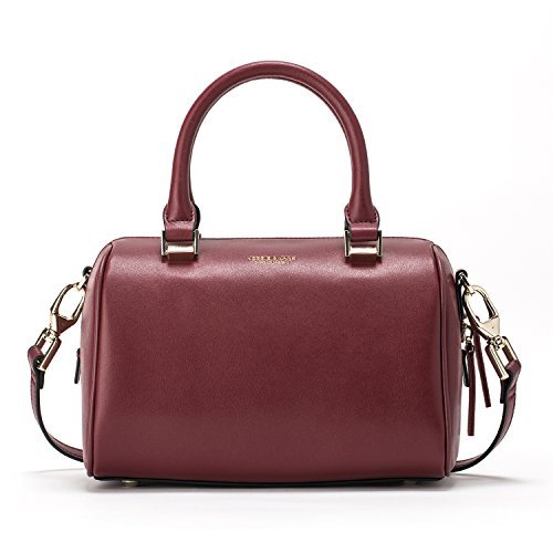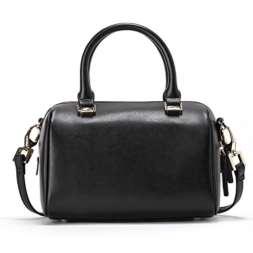 -. Feature : Size (L*W*H): 8.7*5.5*5.9 in; Weight: 1.44 lb / Superior quality classic plain cow split leather with polyester lined interior; classic gold-toned metal hardware / Two top handles for hand carry; an adjustable and detachable shoulder strap; top lateral zipper for handy closing; four studded feet on base. / Inside a main compartment with a side zipper pocket and a slip pocket, comfortably hold wallet, cellphone, camera, makeup, keys and coin purse etc. / Excellent workmanship. Keep your essentials right at your fingertips and greatly ideal for casualness, daily life, party or dating etc.