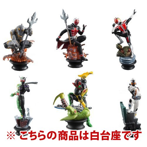 メーカー:メガハウス 商品名:チェスピースコレクションR 仮面ライダー KAMEN RIDER vol.1 白台座ver.6種セット セット内容:仮面ライダーウィザード フレイムスタイル(キング)白台座ver./仮面ライダーフォーゼ(クイーン)(クィーン)白台座ver./仮面ライダーオーズ(ビショップ)白台座ver./仮面ライダーW サイクロンジョーカー(ナイト)白台座ver./仮面ライダー電王 ソードフォーム(ルーク)白台座ver./グール(ポーン)白台座ver.Feature
