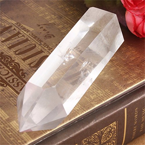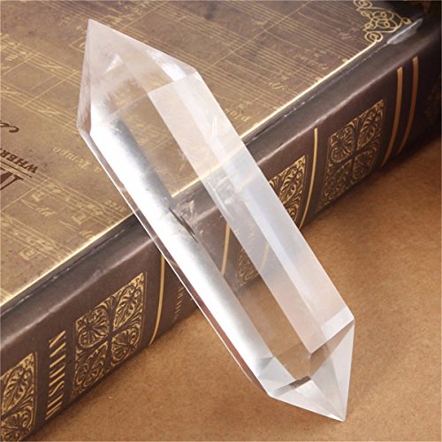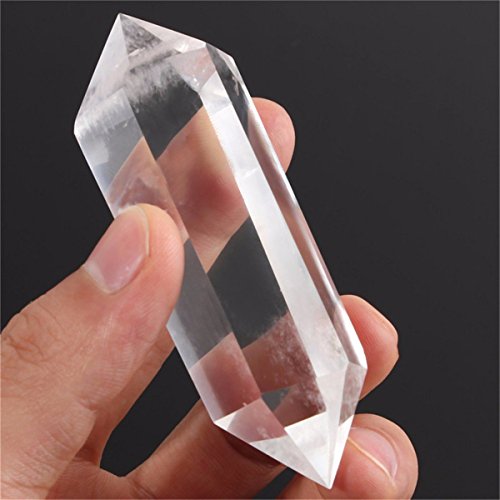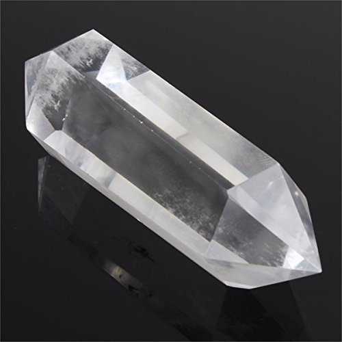 Clear Quartz Crystal,Charminer 6 Facet Double Terminated Point Wand Healing Natural Clear Crystal Hexagonal Prism Stone about 7cm/2.8''L Home Decor