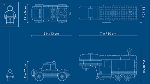 -. Feature : Includes 3 minifigures: mom, dad and Son, plus a crab figure / Caravan opens on the side, opening door, removable front roof, furniture and separate support leg to stand alone, plus a pickup truck with removable cab roof and truck bed with a hitch for the caravan / Accessory elements include a net, toy ship, camera, gas fire, pan, fish, 2 mugs, 2 chairs and a small buildable table / Pickup measures over 2" (7cm) high, 5" (13cm) long and 2" (6cm) wide. / Caravan measures over 3" (10 cm) high, 7" (20cm) long and 2" (6cm) wide.