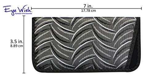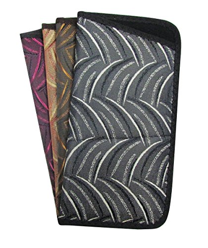 Binding : Eyewear Product Description Protect your eyewear in style with this fashionable soft slip-in eyeglass case. Each soft case features a smooth and sleek fabric woven with a modern abstract crescent pattern, available in your choice of four deep colors: Gray, Dark Brown, Purple, and Light Brown. The edges are finished with a zig-zag stitched grosgrain, giving this case added durability and a polished look. The interior of this case is lined with a soft nylon padding to protect your exensive frames and lenses from damage and scratches. Each case measures 7 inches long, 3.5 inches high and .38 inches deep. These attractive slip-in cases make a perfect gift for anyone who wears medium to large frames. Hand packed with care in Dallas, Texas. 0