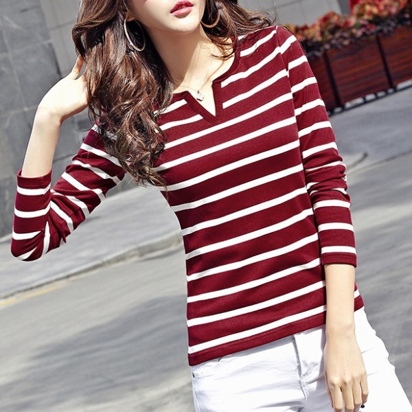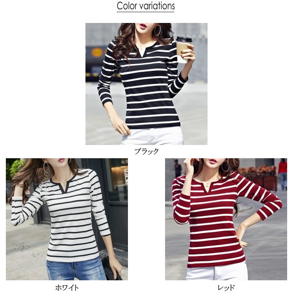 | 商品名 | ボーダー柄 長袖 スキッパーTシャツ |