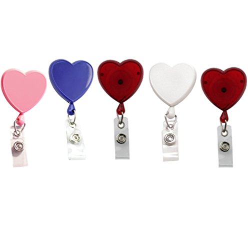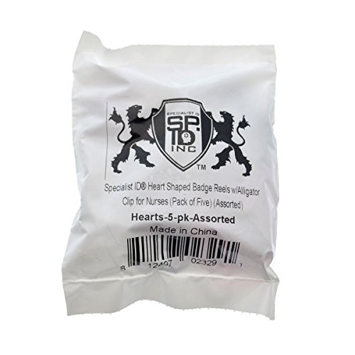 Specialist ID Heart Shaped Badge Reels with Alligator Clip for Nurses (Pack of Five) (Assorted Colors)