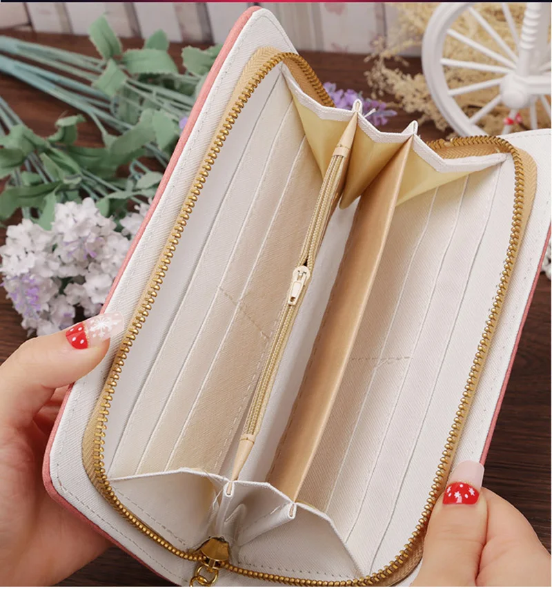 coin zipper pocket wallet long zipper:card holder female wallet Leather Zipper Wallet Women