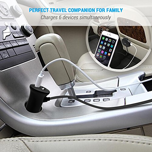 MAKETECH 6 Port 45W/9A USB Fast Car Charger [2+4] for Front and Backseat Passengers with Smart Charging Function