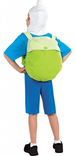-. Binding : Apparel -. Brand : Rubie's -. ClothingSize : One Size -. Color : Multi -. Department : boys -. Feature : Deluxe Finn costume includes shirt, shorts, headpiece and backpack / Adventure Time officially licensed by Cartoon Network / Look for all your favorite characters and go on your own adventure with your friends / Child size Large fits up to 60 Inch tall with a 31 to 34-Inch waist, 35 to 39-Inch chest and 35 to 39-Inch hips / Rubies has been designing and manufacturing costumes since 1950 -. IsAdultProduct : 0 -. Label : Rubies - Domestic -. Manufacturer : Rubies - Domestic -. Model : 886686L-P -. MPN : ru130067 -. PackageQuantity : 1 -. PartNumber : ru130067 -. ProductGroup : Toy -. ProductTypeName : ACCESSORY -. Publisher : Rubies - Domestic -. ReleaseDate : 2013-08-12 -. Size : One Size -. Studio : Rubies - Domestic -. Title : Adventure Time Child's Deluxe Finn Costume -. Warranty : No Warranty