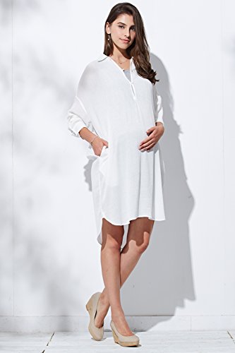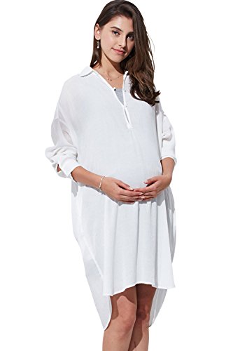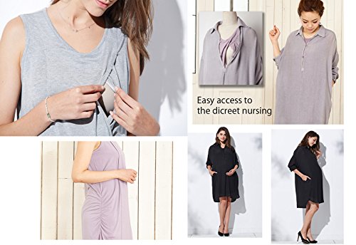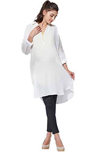 Binding : Apparel Product Description Trendy loose fit shirt and inner top set! Henley button up long sleeve shirt made of light and airy cotton material with sheer texture, creates unique and fashionable look. Round neck inner top made of stretchy and soft Rayon fabric, and will satisfying mom with very sensetive skin. Gathered fabric on side seams provides room for your growing baby belly, and will adjust to changes of body shape even after postpartum period. Nursing comes so easy, just unbutton shirt and pull aside inner layers. Combine this set with your favorite pants, skinny jeans or enjoy feminine style wearing like a single piece. [Item details] * loose fit * front buttons * cotton fabric * stretchy inner top made of Rayon fabric * easy nursing access * side pockets * length 37.5inches approx.