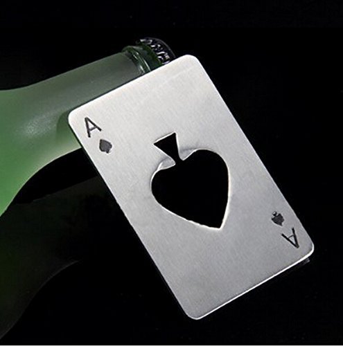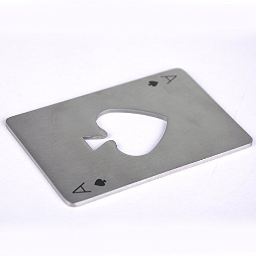 -. Brand : DD2 -. Feature : Use the cleverly crafted hole in the center shaped like a spade to open your beer and soda bottles / Slim style easily fits in your pocket / The perfect addition to your next poker game / Made from heavy duty stainless steelMade from heavy duty stainless steel / Measures approximately 2 x 3.25-inches -. Label : DD2 -. Manufacturer : DD2 -. ProductGroup : Kitchen -. ProductTypeName : KITCHEN -. Publisher : DD2 -. Studio : DD2 -. Title : Credit Card Size Casino Bottle Opener - 2 Pcs