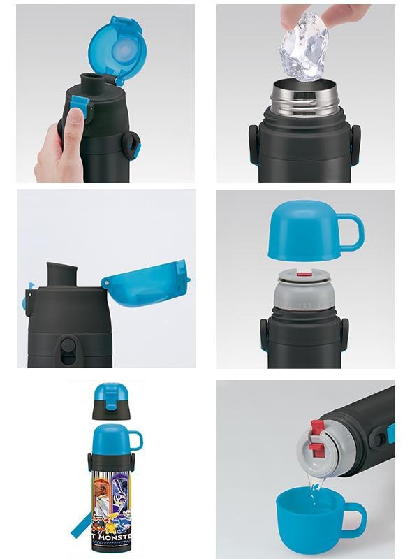 直接口を付けて飲める水筒としても、コップに入れて飲める水筒としても使える2WAYのステンレスボトルです。ダイレクトキャップ使用時は、ワンタッチオープン・飲むときに戻らないキャップロック設計・持ち運びに便利なロック機能搭載。お子様が持ちやすいショルダーベルトとネームプレート付きです♪ |