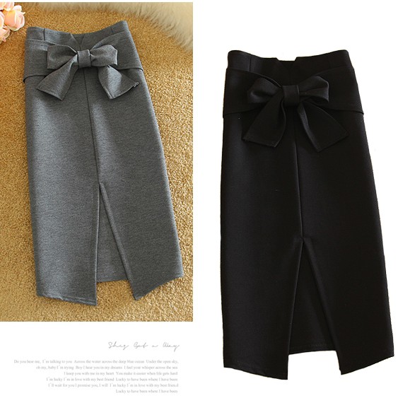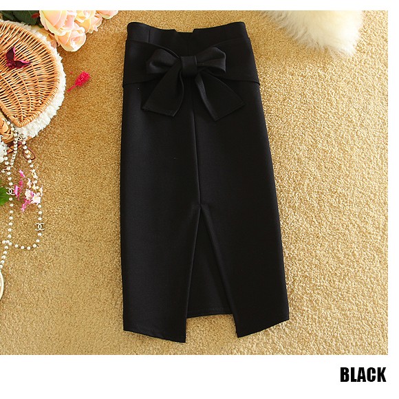 ひざ丈のレディース用タイトスカートです♪ストレッチ素材を使用しており、タイトスカートでも動きやすい☆さらっとした肌触りで、シンプルなきれいめデザインで高見えするアイテムです!トップスをINすることで、大きめリボンの存在感が引き立ち、スタイル良くみせてくれます♪♪【商品詳細】カラー:ブラック/グレーウエスト:約66-70cm ヒップ:約78cm 総丈:約63cm素材:綿・ポリエステル(ストレッチ素材)※フロントにスリットが入っています 約20cm