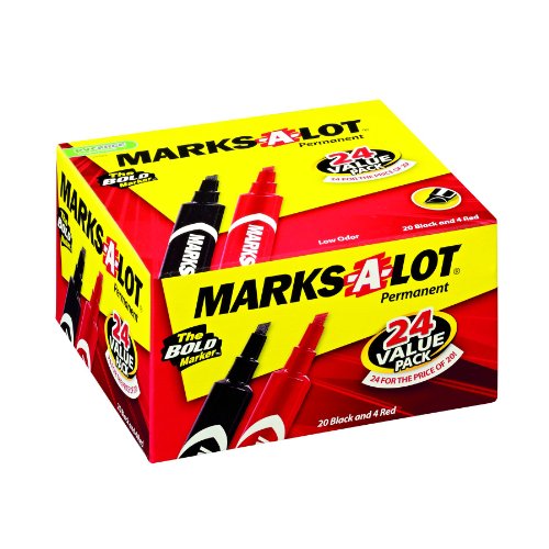 Avery Marks-A-Lot Permanent Markers, Regular Chisel Tip, Red, Black, 24/Pack, PK - AVE98187