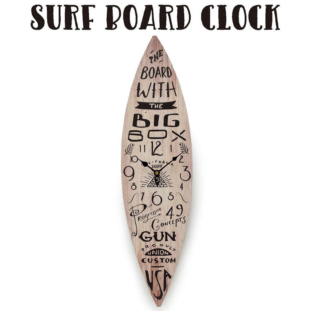 サーフィンのボードの形の掛け時計です。インテリアのアクセントにピッタリです。