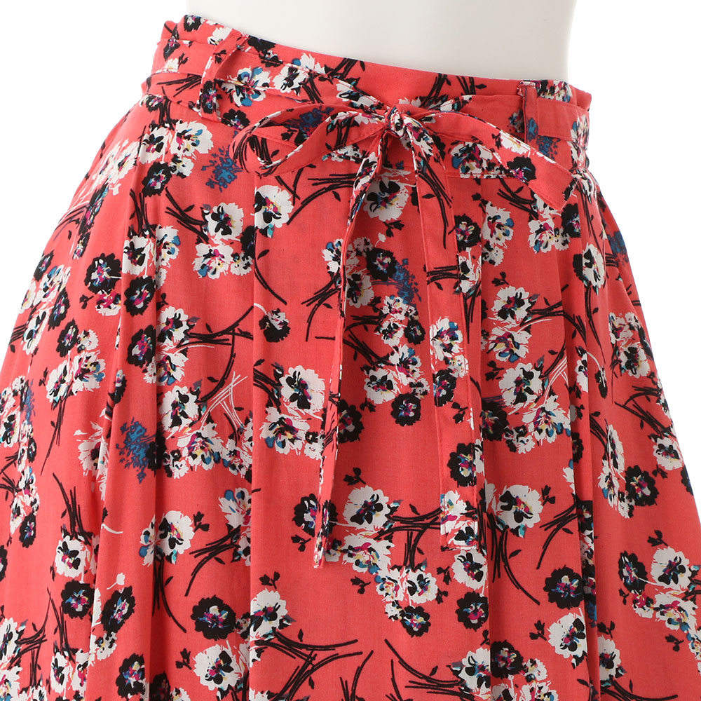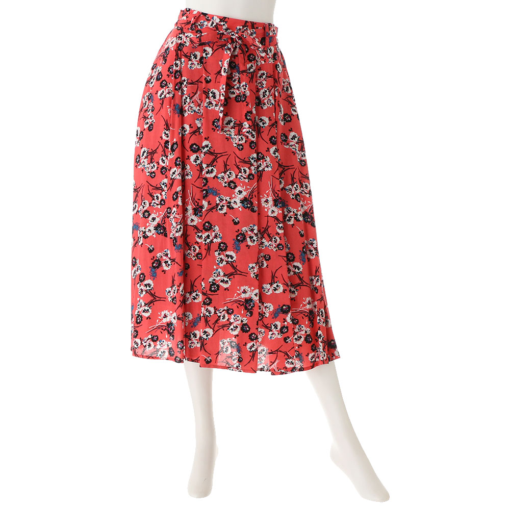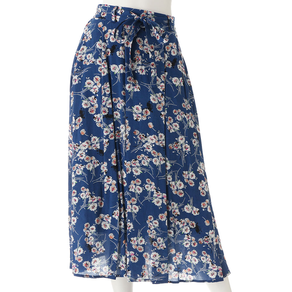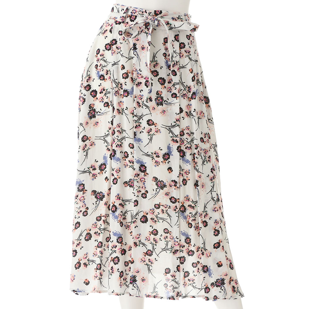 中花柄が印象的なスカート。ギャザーが施されていてもボリュームが出すぎないのも嬉しいポイント。ウエストの後ろはギャザーゴム仕様でリラックス感もあります。ボリューミーなシルエットなので動くたびに表情が変わりシンプルや甘めなトップスをお勧め!!