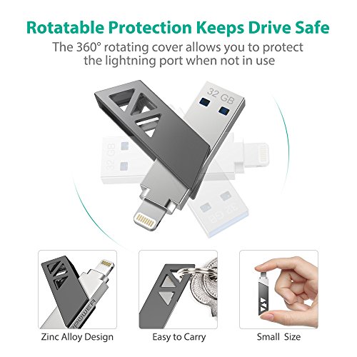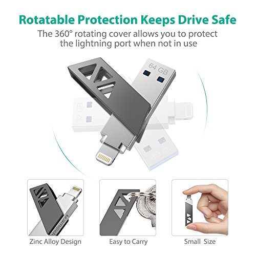 -. Title : RAVPower Flash Drive with Lightning Connector and USB 3.0 (360 Degree Rotatable Cover, MFi Certified, iPhone & iPad Compatibility, Instant Backup, and Direct File Saving)