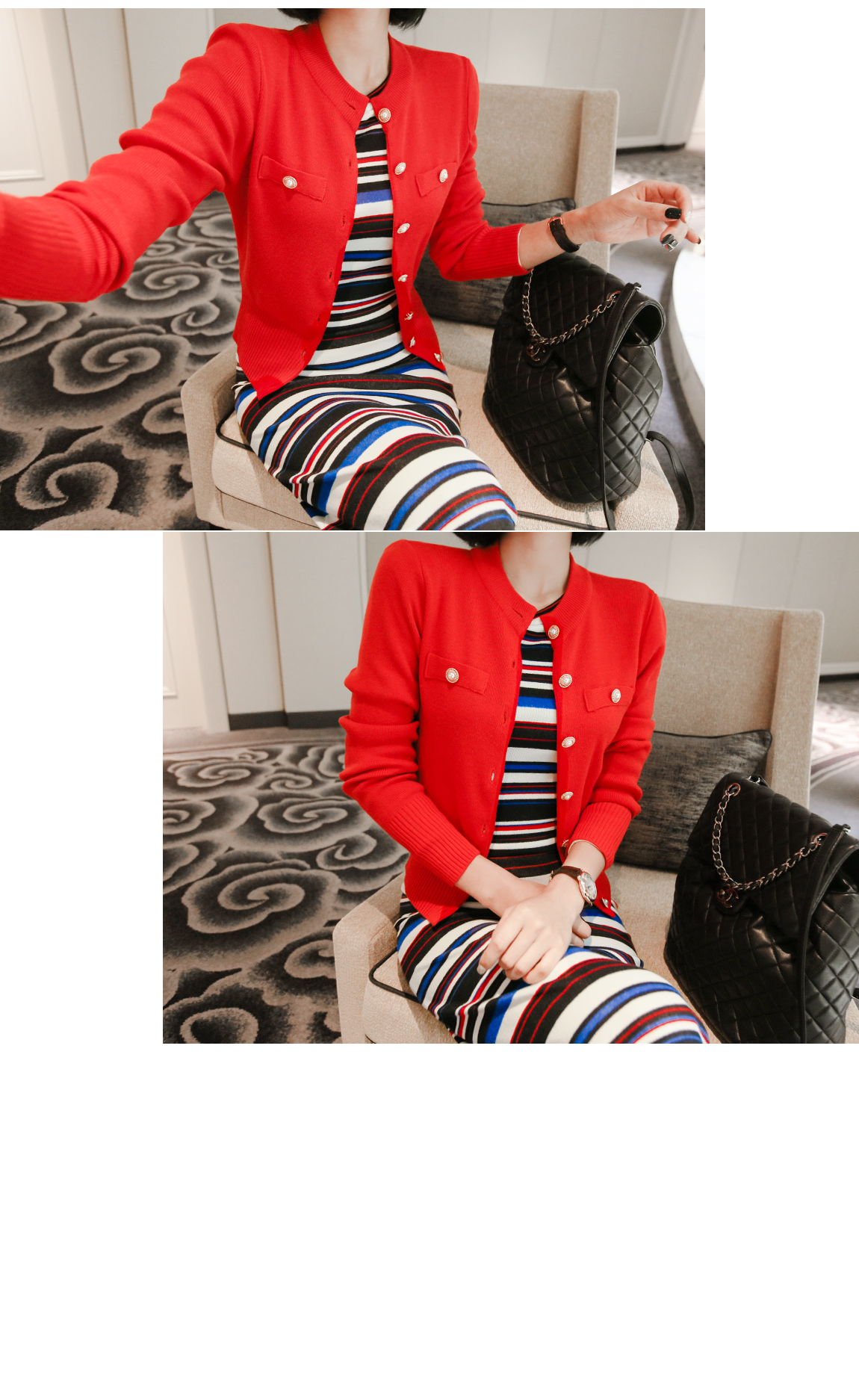 밑단과 소매단에 시보리처리로 안정감있게 잡아주며 전체적인 라인을 살려줍니다
