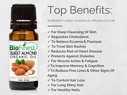 Biofinest Sweet Almond Oil is 100% pure certified organic premium quality, non-diluted, with no fillers or additives. Here's what you'll discover...