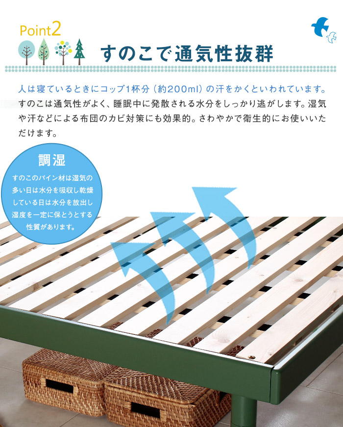 ●高さは3段階調整が出来、自分好みのベッドがきっと見つかります