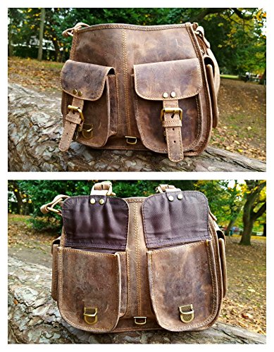 -. Feature : EXQUISITE CRAFTSMANSHIP: THIS STYLISH Vintage Handcrafted Messenger bag is made from supple, gorgeous Genuine BUFFALO leather so it looks fashionable, forms to fit your body and maintains a classy, elegant design / PREMIUM MATERIALS: All our bags is 100% ECO Friendly. Leather is tanned using only natural ingredients, no chemicals involved. Each and every bag is individually hand cut and hand stitched. We use solid brass fittings and YKK Zippers to create our Exclusive, long-lasting items - true luxury goods. / SPACIOUS INTERIOR : Roomy enough to hold all of your essentials and then some 13" x 11" x 6" Interior features one very roomy compartment, Zippered inside pocket, Wallet pocket and cell phone pocket, multiply secure outside pockets. Adjustable shoulder strap for for easy carrying. / VINTAGE STYLE A style statement that won't go unnoticed. This UNISEX Indiana Jones Satchel is perfect gift for any men or women.