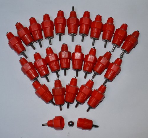 Samyo 25 Pack Fowl Water Nipple Drinker Chicken Feeder Stainless Steel 360 Angle Poultry Ducks Hen Turkeys Geese Screw in Style
