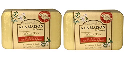 A La Maison de Provence White Teah Hand and Body Soap (Pack of 2) With Shea Butter, Coconut Oil and Argan Oil, 8.8 oz Each
