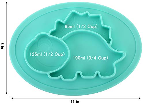 幅約11インチ、高さ8インチ、奥行き1インチのQshare Toddler Plateは、ほとんどのハイチェアにフィットします。上部セクションは約3オンスを保持します。左側のセクションは約4.4オンス、下部のセクションは約6.7オンスです。