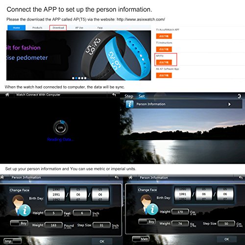 -. Feature : Multi-Functions Smart Watch: Vibration Alarm, Time Date display,Pedometer, calorie burning monitor,Distance traveled, Sport Timer. Accurately track your all-day status like steps taken, distance traveled, calories burned, exercise time. / Silent Vibration & 3D pedometer watch: Built-in silent vibration mode, a silent remind alarm that gently vibrates to remind you; with high sensitivity capable of capturing small movements, and pedometer is more accurate. / Easy Charging:Don't need a charging Cable, just directly inserted activity tracker into the computer or mobile power adapter.(Please pull out the whole display from the band and confirm that you plug into the correct direction,otherwise it won't charge) / Comfortable and adjustable strap: Made by medical silicone, more soft and safety. 5.8" min & 8.8"max wrist-design for children and adults.【WARRANTY AND SUPPORT】7*24 online support standing by, RISK FREE 100% money-back guarantee, 2-Years Replacement Warranty and life-time technical support. / Please note : This kind don't with Bluetooth ,NO APP needed,can't sync data to smartphones.Just a simple but powerful pedometer bracelet. For the first time,you need to enter your personal information (age,height,weight,gender) to get the accurate data. At midnight,the sports data collected from that day steps, speed, calories distance and time will reset back to zero ready to start a new day. If you don't use the metric system,you can use the unit conversion: Height: 1 inch = 2.54 centimeters,