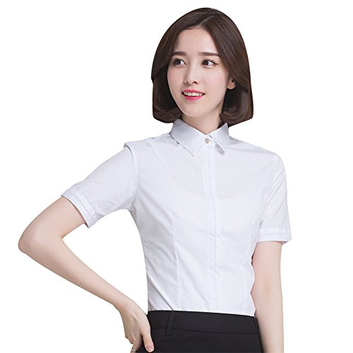 -. Title : (ディエスーラグジュアリー)DS-Luxury レディース シャツ ブラウス ワイシャツ 就職活動 通勤OL 折り襟 エレガント 半袖 レース ショート丈 オフィス ホワイト ブルー S M L XL