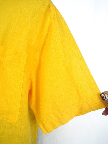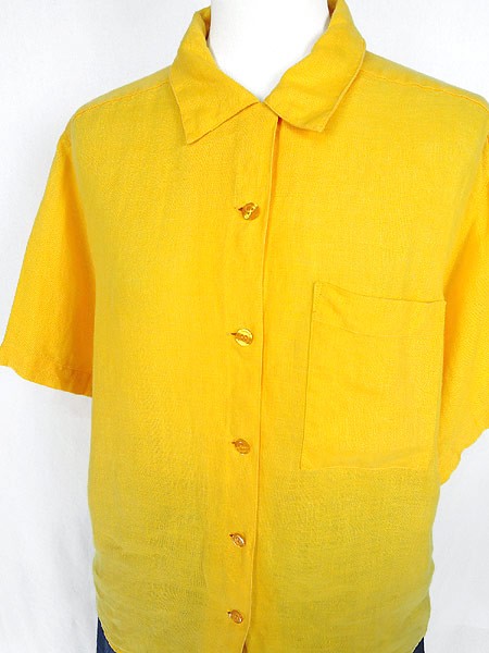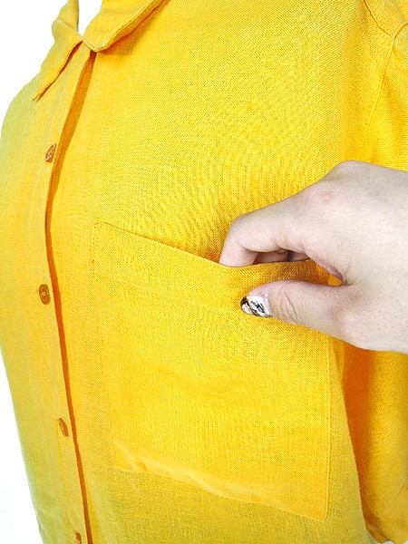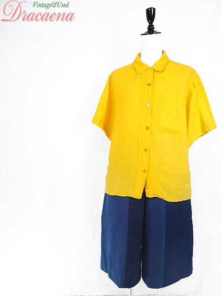 Ladies ブランド- カラー黄 メール便不可 コンディション★★★ 素材リネン 表記サイズ8 実寸サイズ 着丈 62 cm 身幅 51 cm 肩幅 40 cm 袖丈 23 cm ※ウエスト・ヒップ以外は平置き採寸