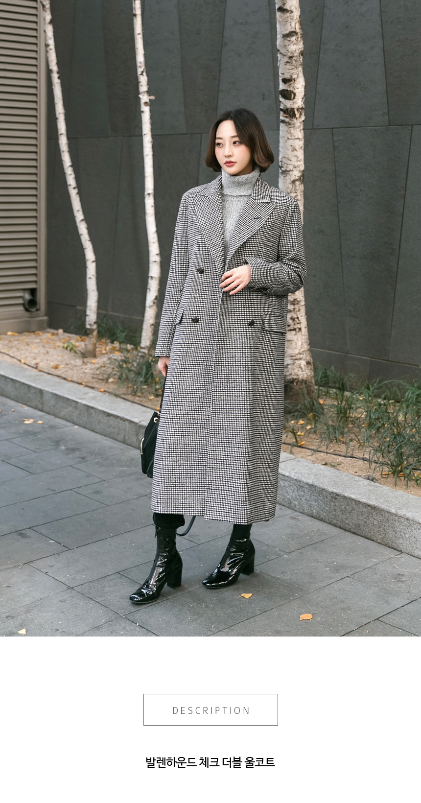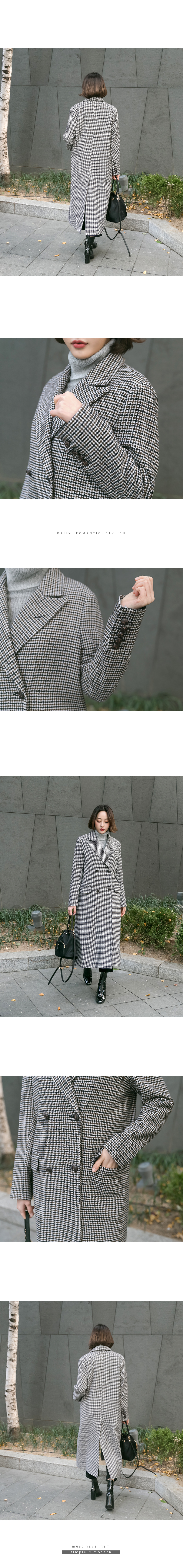 롱한 길이감의 더블 코트예요.