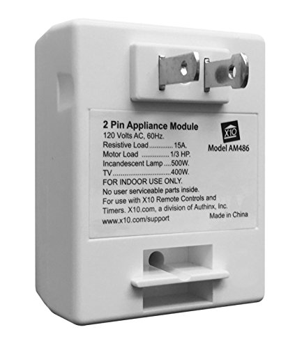 -. Brand : X10 -. EAN : 0099081004861 -. Feature : Turn electronic devices on or off with a universal remote / Always come home to an air conditioned or fan-cooled home / No new wiring required -. Label : X10 -. LegalDisclaimer : Seller reserves right to select either Powerhouse or Radio Shack (61-2681A) module, as both are x-10 compatible and equally effective. -. Manufacturer : X10 -. Model : AM486 -. MPN : AM486 -. PackageQuantity : 1 -. PartNumber : AM486 -. ProductGroup : Home Improvement -. ProductTypeName : HOME_LIGHTING_ACCESSORY -. Publisher : X10 -. Studio : X10 -. Title : X10 AM486 Appliance Module -. UPC : 099081004861