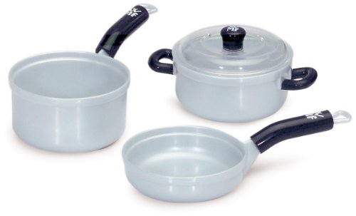 ドイツの高級メーカー「WMF」の調理器具を テオ・クラインがままごとのセットにしました。 WMFの落ち着いた雰囲気がままごとの世界にまで広がります。 調理器具の直径が8cmと小ぶりサイズ。 小さなお子さまの手にちょうどよいサイズも魅力です。 フライパン、片手鍋、両手鍋が全てセット。 WMFの本物のお鍋シリーズ同様、重ねて収納が可能です。 また、鍋の蓋はライパン、片手鍋、両手鍋 全てに合うようにできています。 お友達とお料理ごっこを楽しんでください!Feature