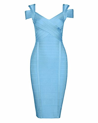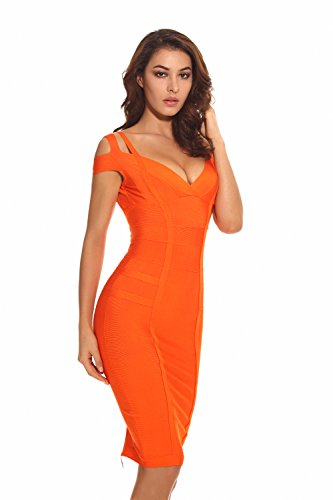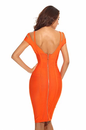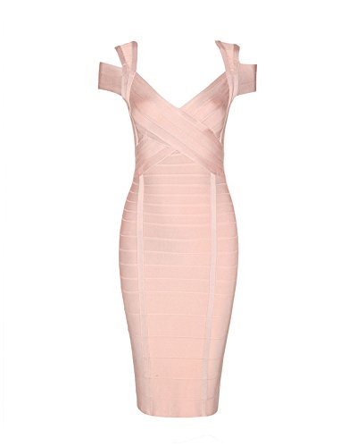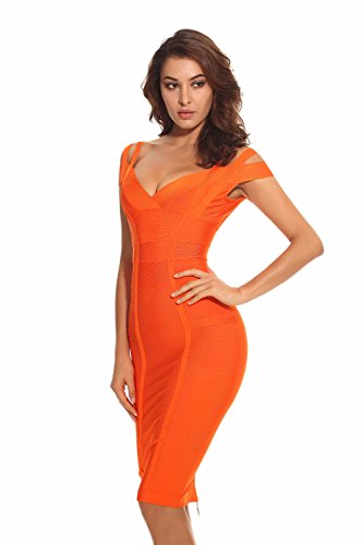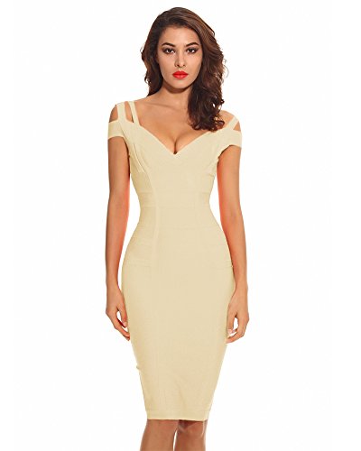 Whoinshop Women's Off Shoulder Strappy Open Back Midi Bodycon Cocktail Bandage Dress is a perfect mix of chic and daring.The double straps and deep-v design make this dress special. The bingbing gold zipper on the open back make this pencil dress a perfect Fall piece.