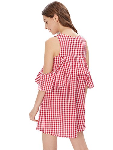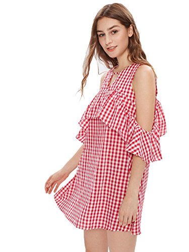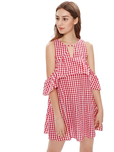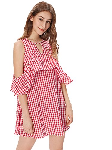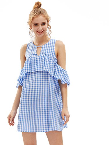 Cold shoulder, ruffle trim, cutout front, keyhole back and striped dress
