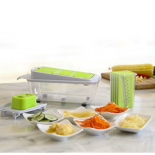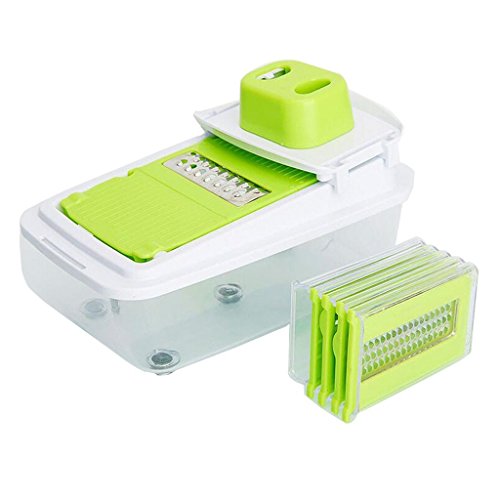 - Come with a blade caddy for storing 5 plates, our 5 interchangeable blades include: straight ribbon blade; julienne ribbon blade; julienne slicer; mandoline slicer; and coarse grater blade
