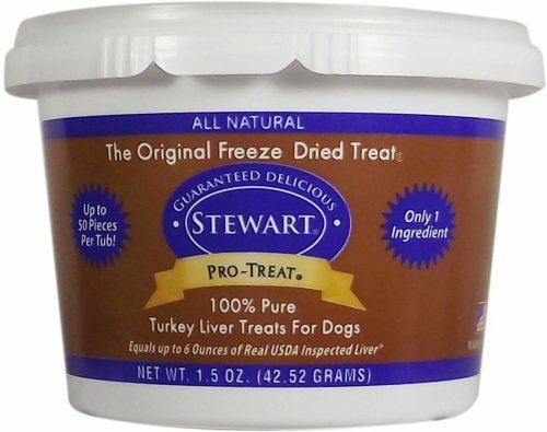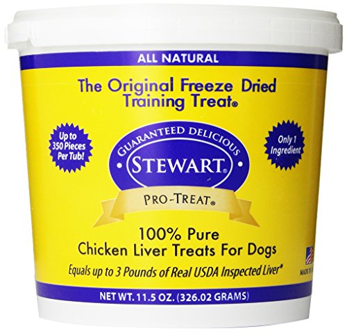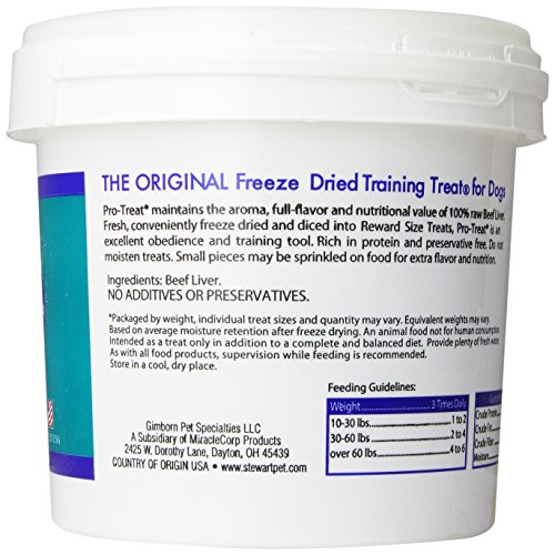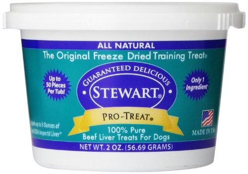 Stewart Pro-Treat beef liver for dogs is an all natural dog treat made with 100% freeze dried liver. With just one single ingredient, Pro-Treat is a gluten-free, grain free dog treat packed full of lean protein and beef liver nutrition. Considered a high value reward, Stewart freeze dried liver has been one of the best dog training treats on the market for over 40 years. Pro-Treat liver treats are also perfect as a food topper for picky eaters, or anytime you just want to share your love. When it comes to treats, we know that peace of mind is important. Rest assured that our quality standards ensure that you're feeding safe dog treats, as well as the best natural dog treats made in America.Feature