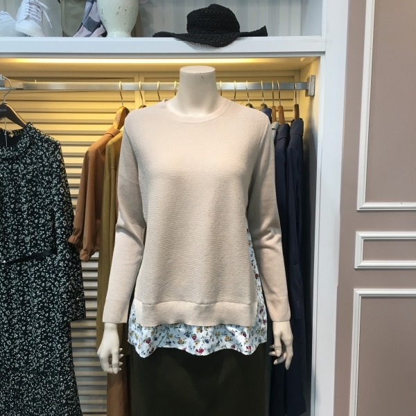 밑단 쉬폰 레이어드 형식의 니트 디자인입니다