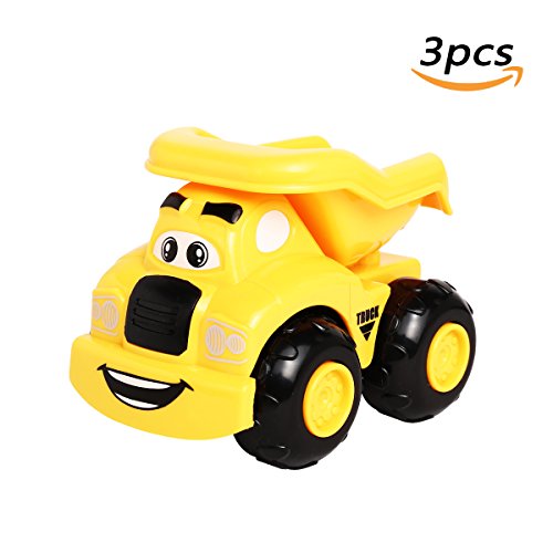 Push and go set of 3 pull back toy trucks for toddlers. Perfect for enthusiastic little hands.